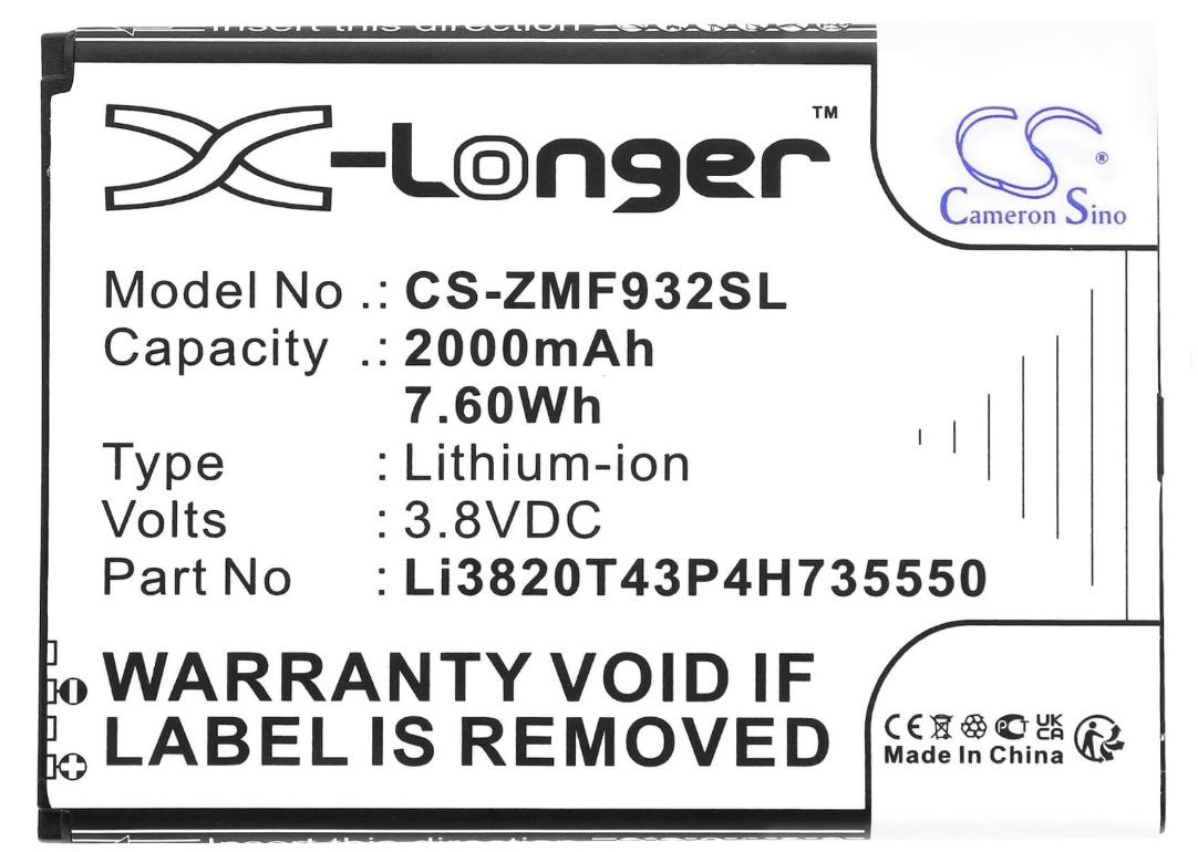 Akumulator CS‑ZMF932SL to wysokiej jakości bateria zamienna przeznaczona do urządzeń mobilnych korzystających z modelu Li3820T43P3h735550. Dzięki solidnej konstrukcji, stabilnym parametrom oraz technologii Li‑Poly zapewnia dłuższy czas pracy, niezawodne działanie i pełną kompatybilność z oryginalnym akumulatorem.