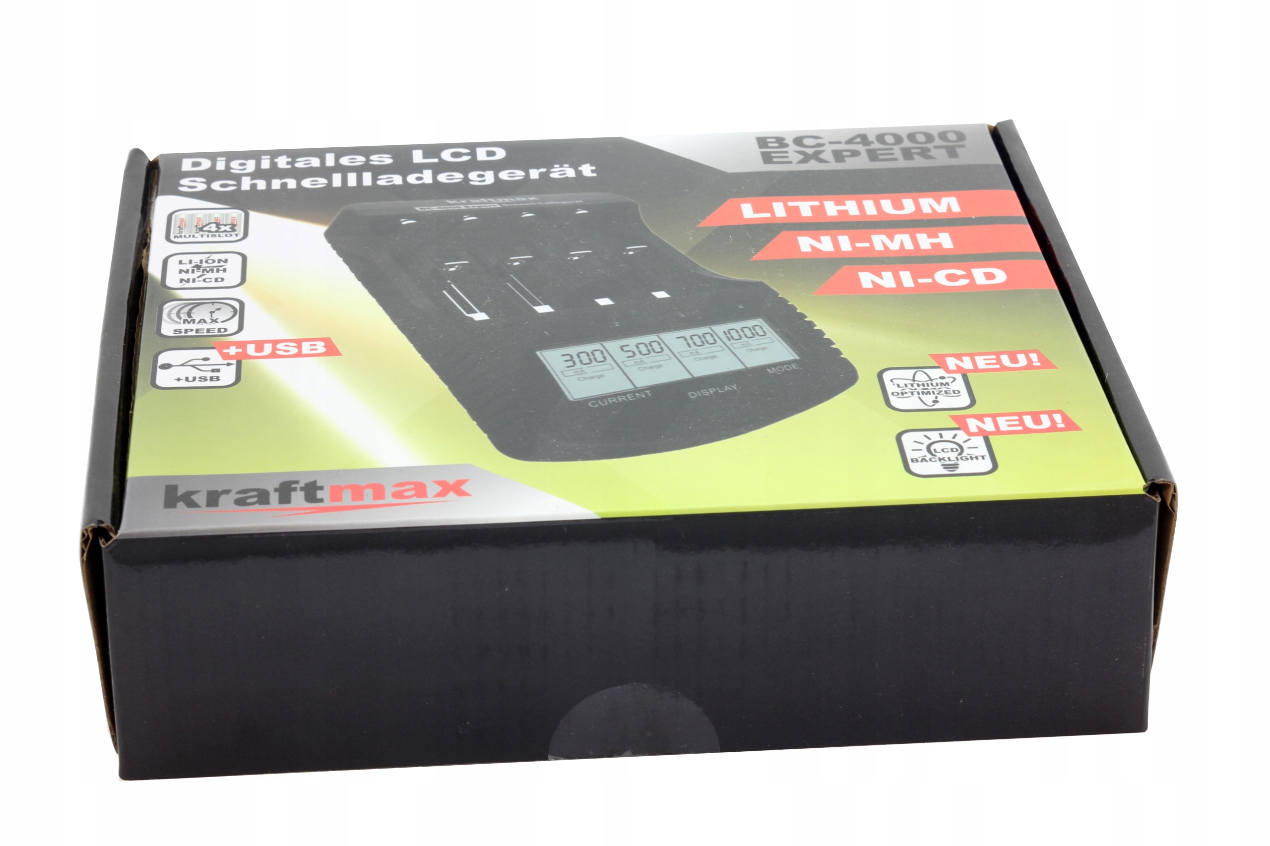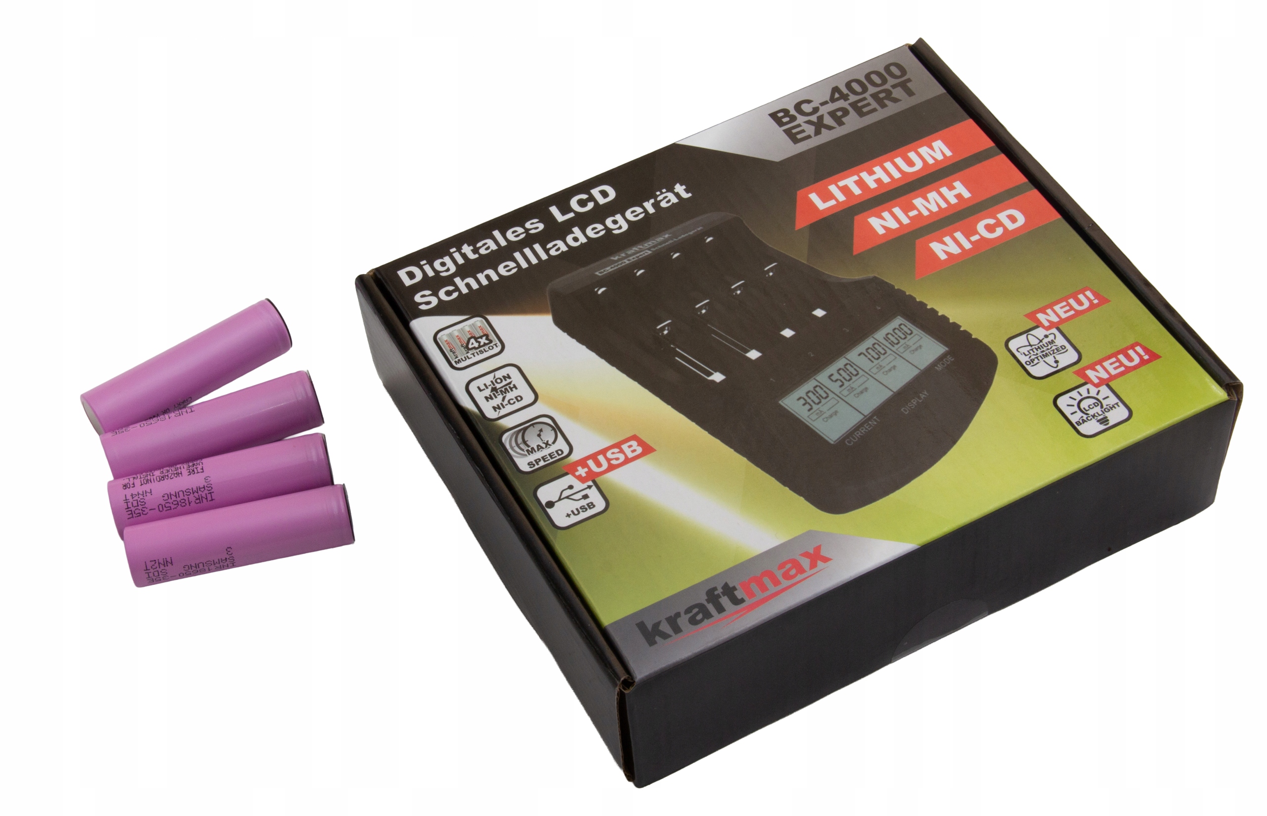 dzięki zoptymalizowanemu systemowi rozpoznawania akumulatorów pozwala oprócz akumulatorów NiMH (niklowo-wodorkowe) oraz NiCD (niklowo-kadmowe) ładować akumulatory Li-Ion (litowo-jonowe)