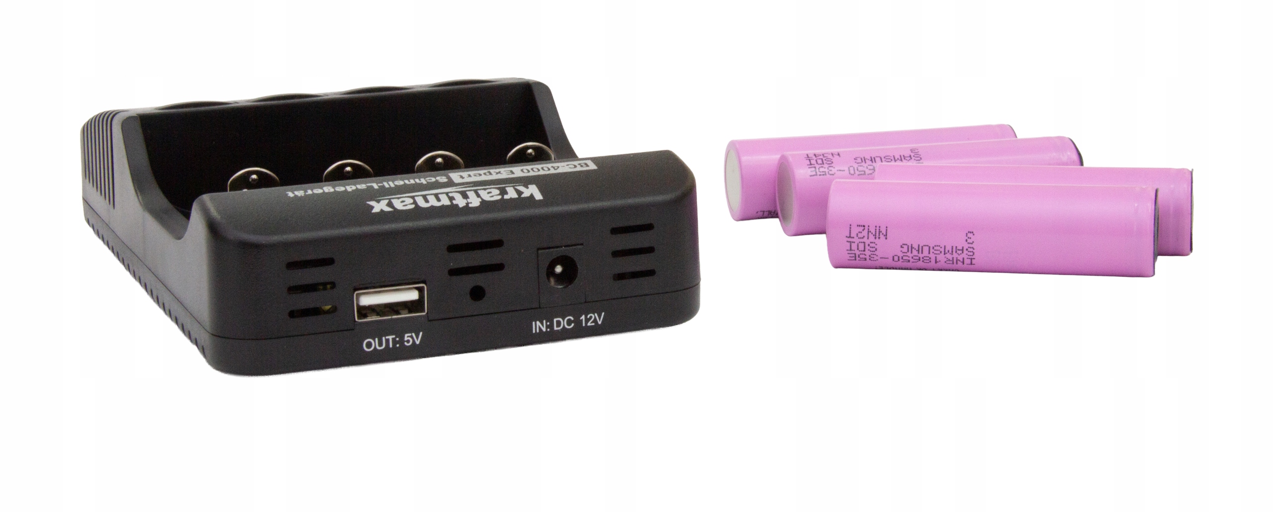W komplecie z ładowarką 4 szt ogniw 35E Firmy SAMSUNG o pojemności 3500mAh